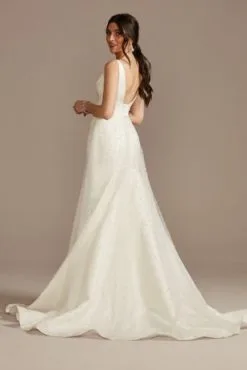 Allover Pearl Convertible Tulle Cape Train