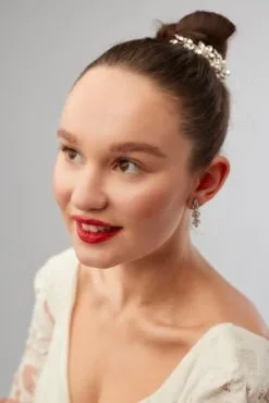 Floral Lace And Crystal Trimmed Elbow Length Veil