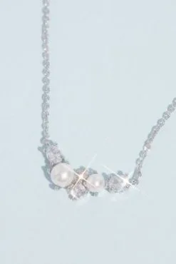 Pearl And Cubic Zirconia Crystal Leaves Bracelet