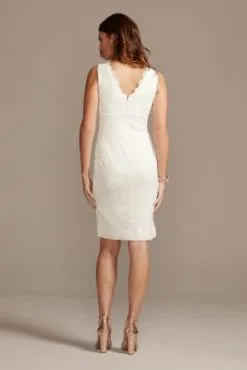 Scalloped Lace V-Neck Sheath Knee-Length Dress
