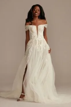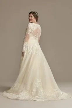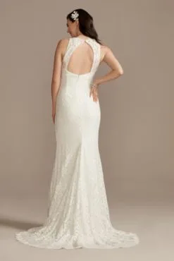 Scalloped Stretch Lace Halter Plus Wedding Dress