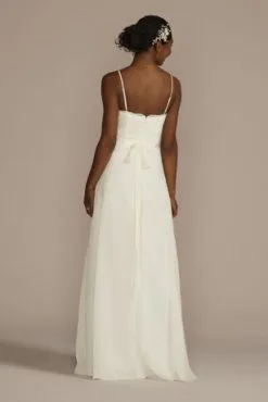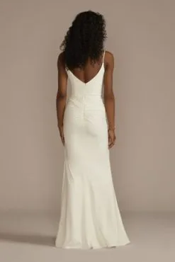 Ruched V-Neck Spaghetti Strap Sheath Wedding Dress