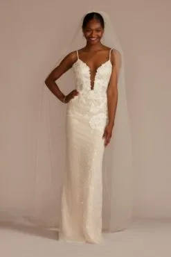 Sequin Floral A-Line Spaghetti Strap Wedding Dress