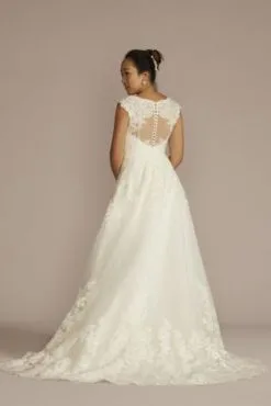 Scalloped Lace Cap Sleeve Ball Gown Wedding Dress