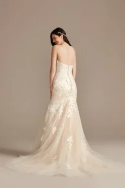 Lace Applique Mermaid Strapless Wedding Dress