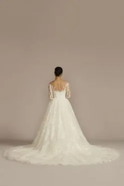 Lace Appliqued Illusion Long Sleeve Wedding Dress