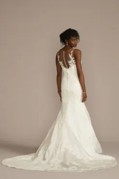 Lace Applique Satin V-Neck Mermaid Wedding Dress