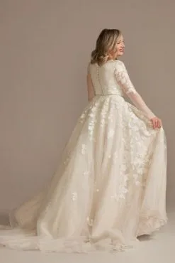 Lace Applique Wedding Dress With Removable Sleeves