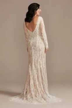 Illusion Plunge Long Sleeve Lace Wedding Dress