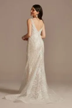 Illusion Plunge Lattice Skirt Wedding Gown