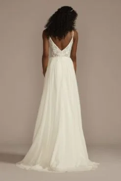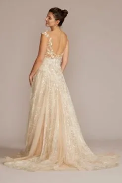 Illusion Lace Plunge Bodice Petite Wedding Dress