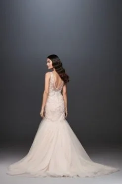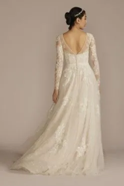 Long Sleeve Plunge Lace Chiffon Wedding Dress