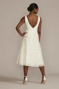 Midi-Length Lace V-Neck Dress With Banded Trim