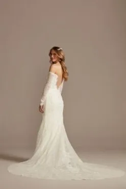 Off The Shoulder Lace Sleeve Trumpet Wedding Gown
