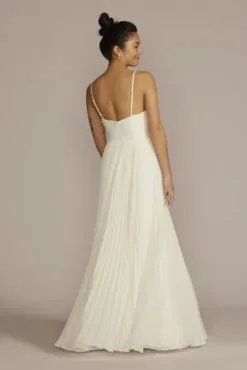 Pleated Spaghetti Strap A-Line Wedding Dress