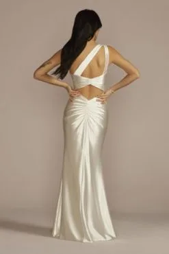 One-Shoulder Ruched Back Sheath Wedding Dress