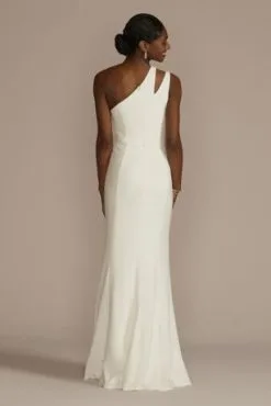 One-Shoulder Stretch Crepe Sheath Wedding Dress