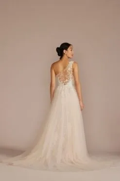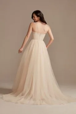 Plunging Open Back Tulle Wedding Dress