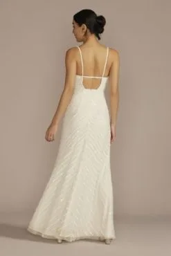 Open Back V-Neck Beaded Sheath Wedding Dress