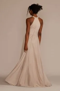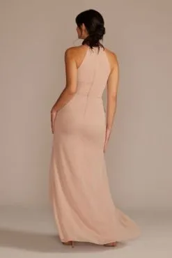 High-Neck Chiffon Bridesmaid Dress With Cascade