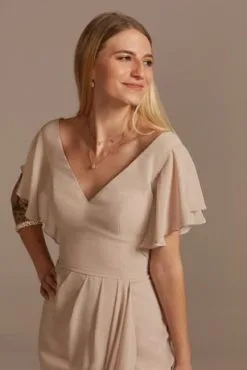 Flutter Sleeve Crepe Satin Ruffle Bridesmaid Dress