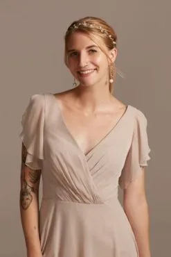 Flutter Sleeve Georgette Wrap Bridesmaid Dress