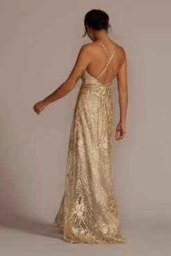 Sleeveless Long Mesh Dress With Illusion Neckline