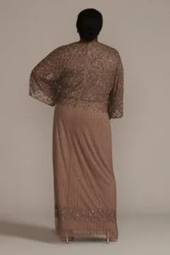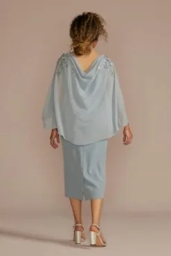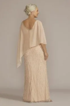 Beaded V-Neck Sheath Gown With Chiffon Capelet