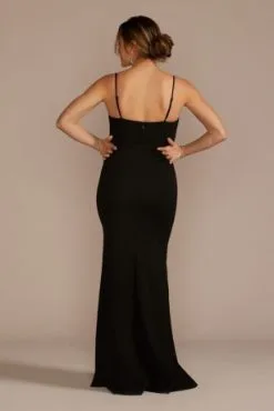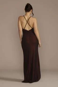 Cowl Neck Metallic Glitter Knit Sheath With Slit