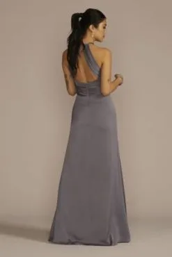 Cowl Neck Metallic Glitter Knit Dress With Slit