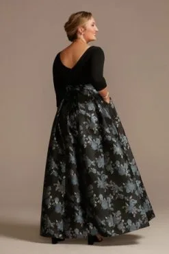 Brocade Off-the-Shoulder Puff Sleeve A-Line
