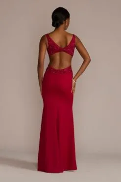 Crepe Off-the-Shoulder Sheath With Embellishment