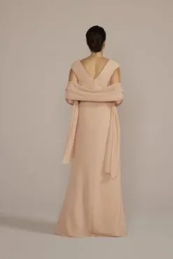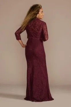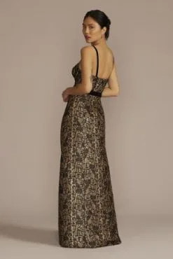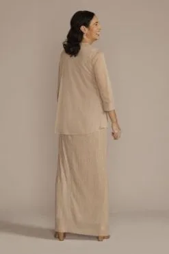 Floor Length V-Neck Metallic Sheath Jacket Dress