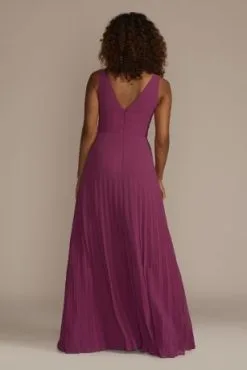 Floor Length V-Neck Pleated Chiffon A-Line Dress