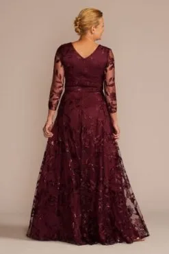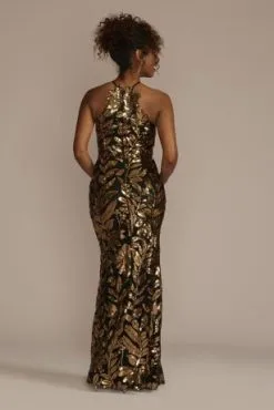 Floor Length Sequin Sheath Gown With Skirt Slit