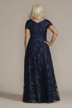 Glitter Lace Short V-Neck Sheath Dress And Jacket