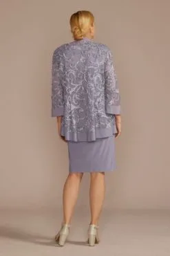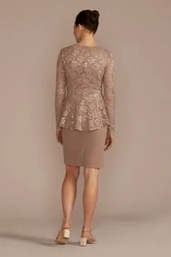 Short Crepe Sheath Dress With Lace Peplum Jacket