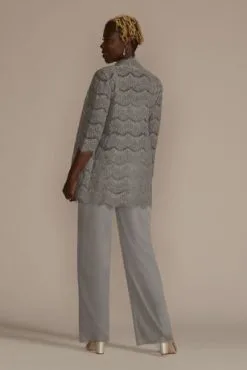 Sequin Lace Three-Quarter Sleeve Chiffon Pantsuit