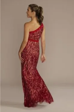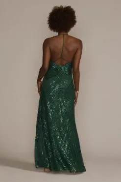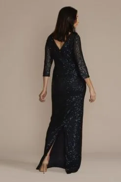 Sequin Sheath With Three-Quarter Illusion Sleeves
