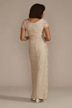 Short Lace Sheath Dress With Asymmetrical Capelet