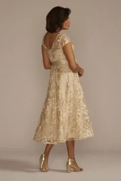 Scalloped Cap Sleeve Sequin Embroidered Sheath