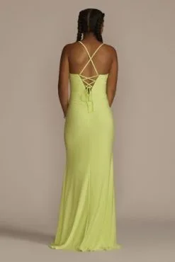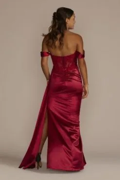 Off-Shoulder Satin Sheath With Embroidered Corset