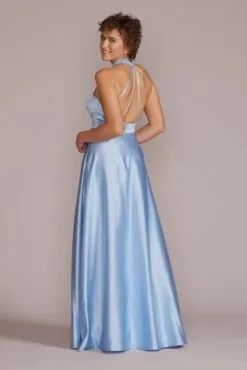 Satin Halter A-Line With Bodice Cutout