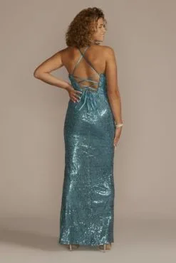 Short Glitter Stretch Satin Lace-Up Sheath