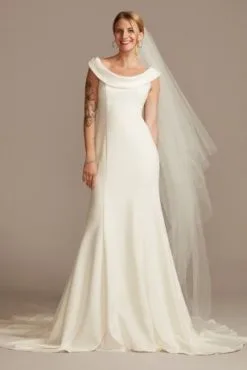 Prepare to wow as you walk down the aisle in this high-neck tank wedding dress. Adorned in allover tonal sequins, you’ll sparkle with each and every step. A low scoop back adds a final flourish, ensuring that your exit will be just as dramatic as your entrance.