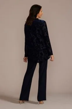 The beauty of a jumpsuit is threefold: They’re comfortable, stylish, and perfect for any occasion. This ensemble balances burnout velvet on top with solid straight leg pants.