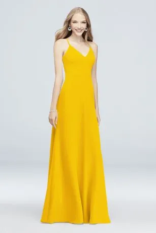 Simple and classic, this spaghetti strap, V-neck chiffon bridesmaid dress is a blank slate waiting for the personal touch of your favorite shoes, jewelry, wraps, and more.