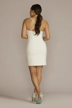 Your bridal style will be off the charts in this slinky cross-back short dress. The faux-wrap skirt and cut-out detail make it ideal for a bachelorette or after party. Pair it with glitzy heels for the ultimate party look.