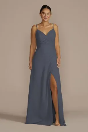 Behold, the magic of side-draping! Made of crinkle chiffon for touchable texture, this spaghetti strap bridesmaid dress is flattering and fun to wear.