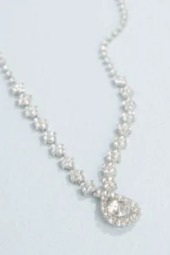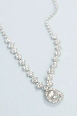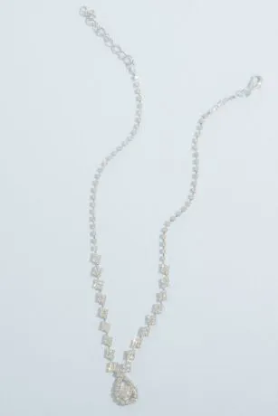 Drape yourself in sparkles with this crystal earring and necklace set. The drop earrings feature round stones in a linear setting that tapers in and out, while the necklace is topped with a standout teardrop pendant framed with smaller crystals that catch the light.